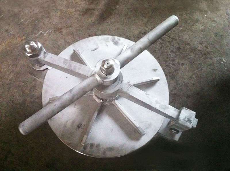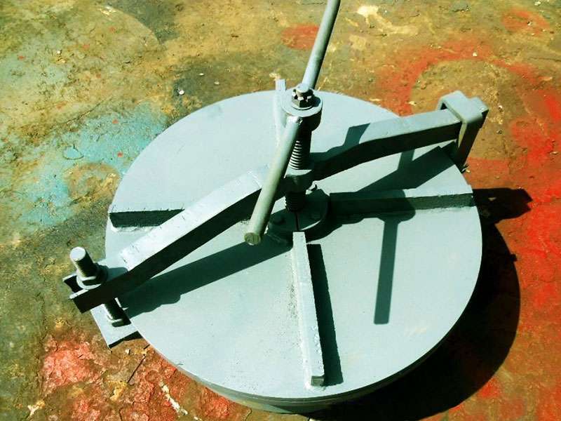 旋柄快開人孔即縮小的人孔,其安設(shè)是為了安裝、拆卸、清洗和檢修設(shè)備內(nèi)部裝置。 旋柄快開人孔的結(jié)構(gòu)基本相同,由一個(gè)短筒節(jié),蓋上一塊盲板構(gòu)成。旋柄快開人孔直徑一般為150~250mm,應(yīng)使工人戴上手套并握住工具的手能方便地通過,標(biāo)準(zhǔn)化旋柄快開人孔的公稱直徑有DN150、DN250兩種。當(dāng)設(shè)備公稱直徑大于或等于1000mm時(shí),宜設(shè)置旋柄快開人孔。